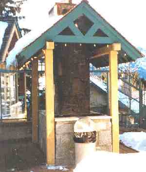 The outdoor barbeque in winter; winter or summer, the barbeque is available for use. |