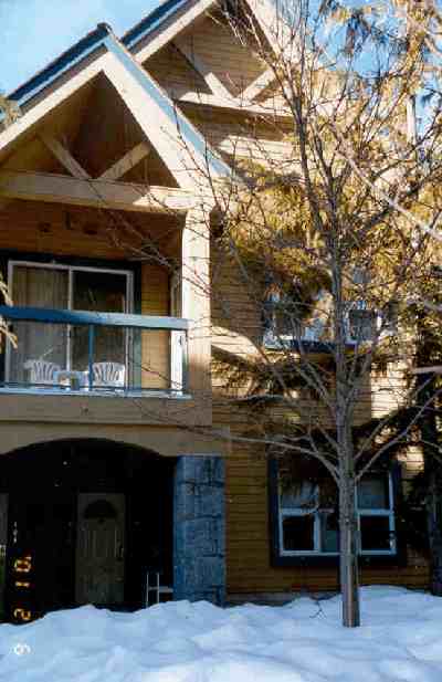Trees at the front of Snowbird101 separate the townhouse from the road and create privacy and sound proofing. |