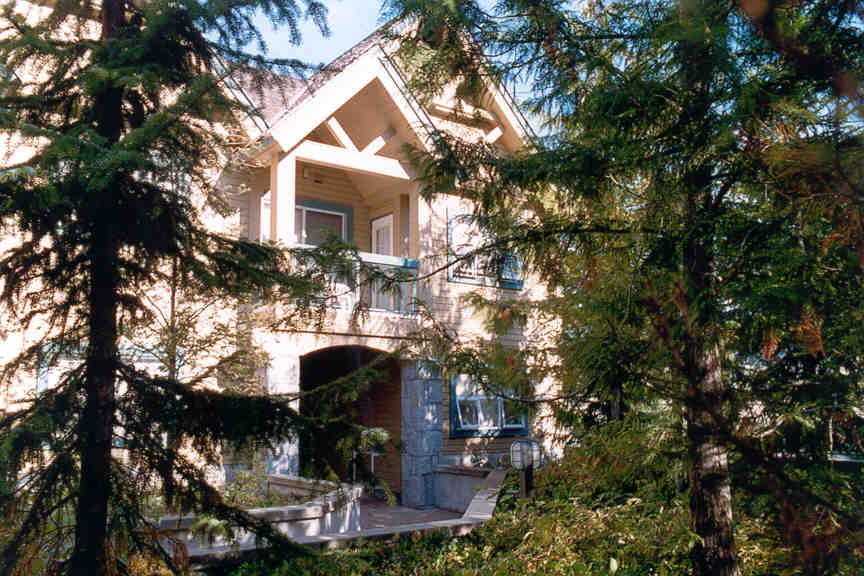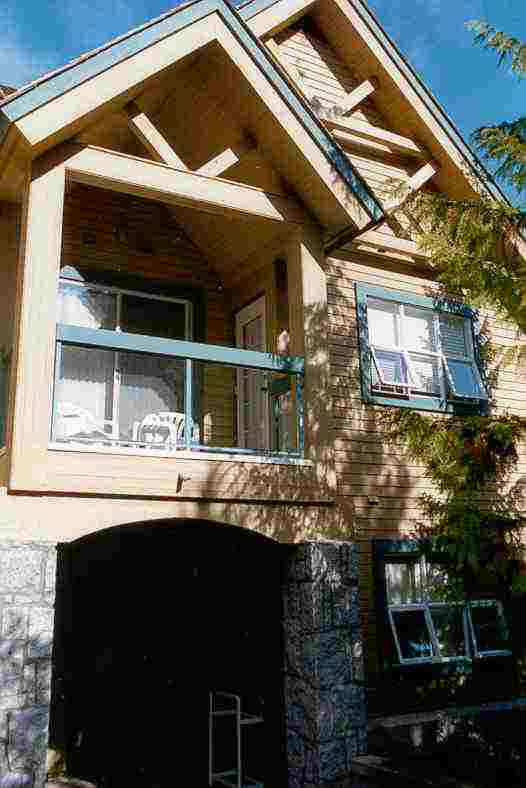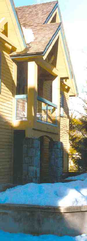 View of the front of Snowbird 101. Snowbird 101's living areas are on the second floor. Its entrance hall is on the ground floor. |