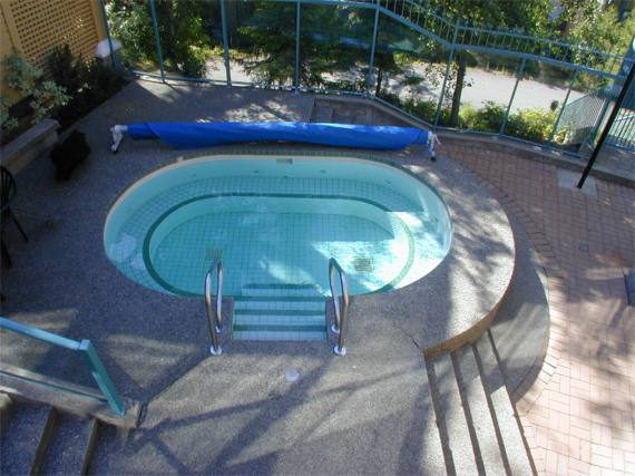 A summer view from the west balcony. Green spaces, and pedestrian and cycling trails wind through the quiet neighbourhood. |